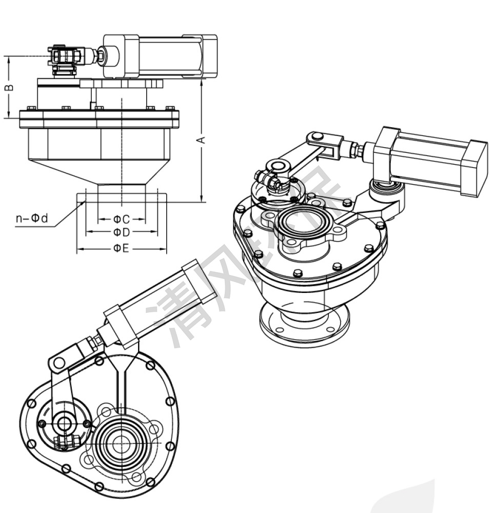 氣動排氣閥設(shè)置于倉泵排氣口,倉泵進料時,該閥門處于打開狀態(tài),倉泵進料完畢,該閥門關(guān)閉。該閥主要部件閥板受沖擊面采用鎢合金或耐磨陶瓷,磨損性能較其他同類型閥門更為出色,經(jīng)實踐證明,該閥的結(jié)構(gòu)嚴密,啟閉性好,具有耐壓,耐磨,耐沖擊的特點,大大提高了系統(tǒng)運行的可靠性,穩(wěn)定性。