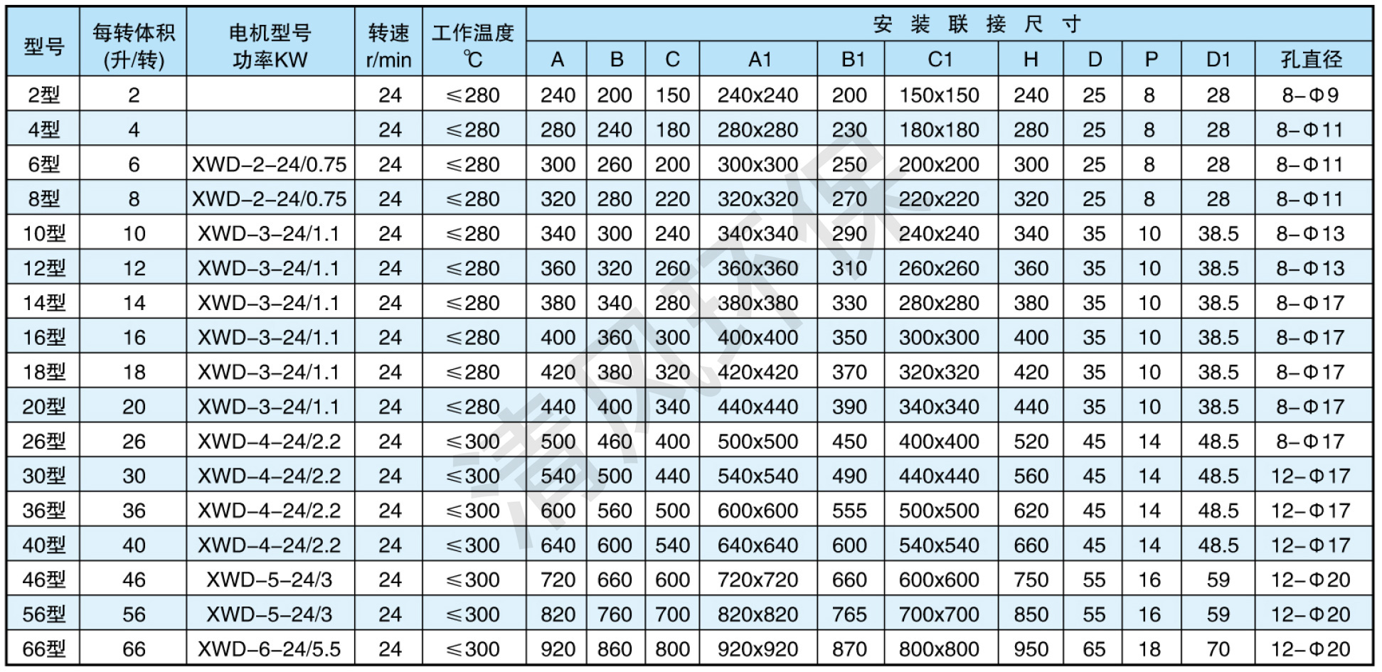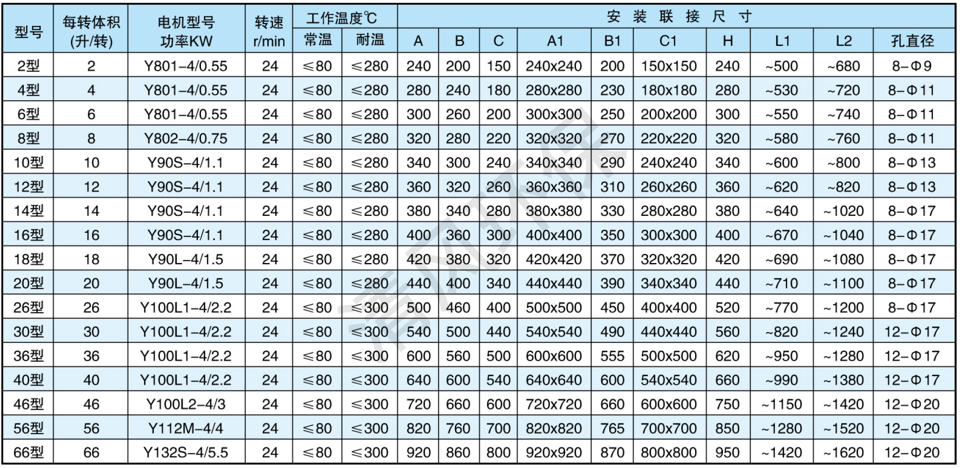 本產(chǎn)品在結(jié)構(gòu)上分A型和B型,A型為直聯(lián)式傳動(dòng),技術(shù)參數(shù)見表一;B型為針輪減速機(jī)配鏈傳動(dòng),其技術(shù)參數(shù)見表二;產(chǎn)品殼體是標(biāo)準(zhǔn)鑄鐵,還可生產(chǎn)鑄不銹鋼、鑄鋁、鑄銅、焊接殼體等,產(chǎn)品配用普通電動(dòng)機(jī)以Y系列為標(biāo)準(zhǔn),還可配用防爆電機(jī)、調(diào)速電機(jī)、變頻器等。最終以客戶要求為準(zhǔn)。